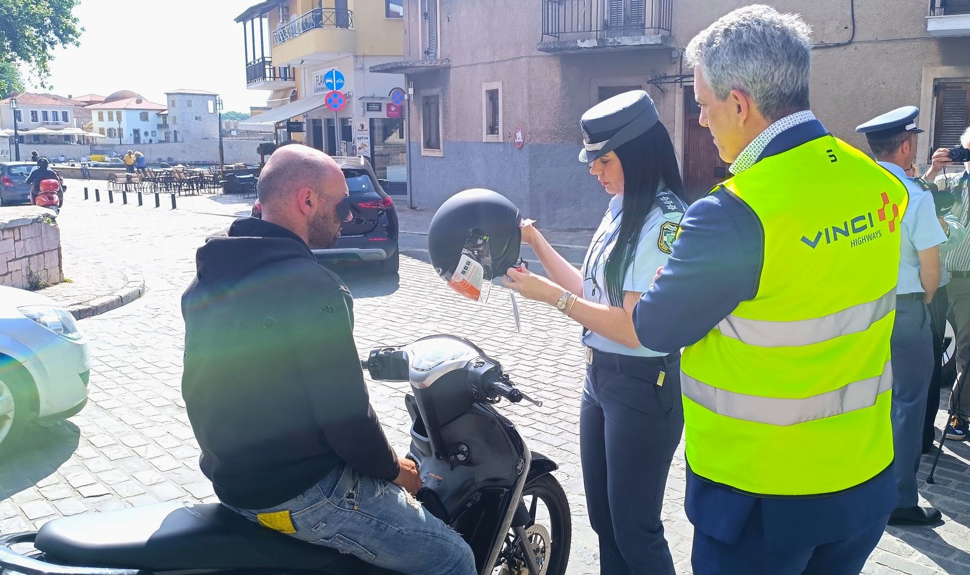 Στις 15 Μαΐου, στο πλαίσιο τροχονομικού ελέγχου που έγινε στο λιμάνι της πόλης, οι άνθρωποι της Τροχαίας αντί να βεβαιώσουν πρόστιμα στους αναβάτες δικύκλων που δεν φορούσαν κράνη, τους χαρίσουν από ένα! Η δωρεά του κράνους συνοδεύτηκε φυσικά με την προτροπή να το χρησιμοποιούν σε όλες τις διαδρομές, ακόμα και τις πιο σύντομες.