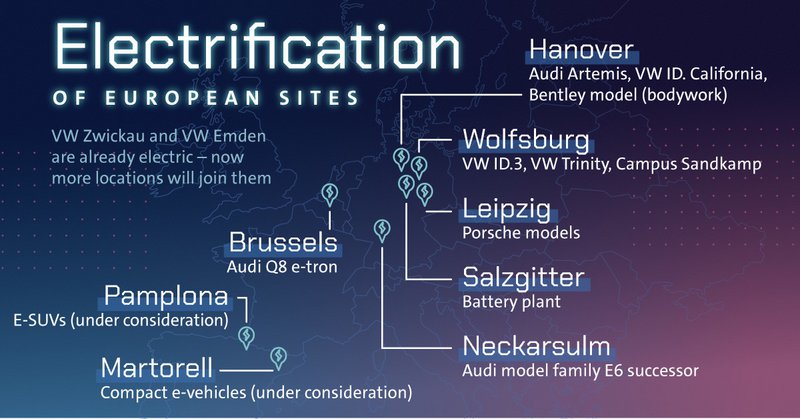 Το VW Group σχεδιάζει περαιτέρω επενδύσεις για την ανάπτυξη της ηλεκτροκίνηση όχι μόνο στη Γερμανία, αλλά και στις μονάδες παραγωγής του στην υπόλοιπη Ευρώπη.