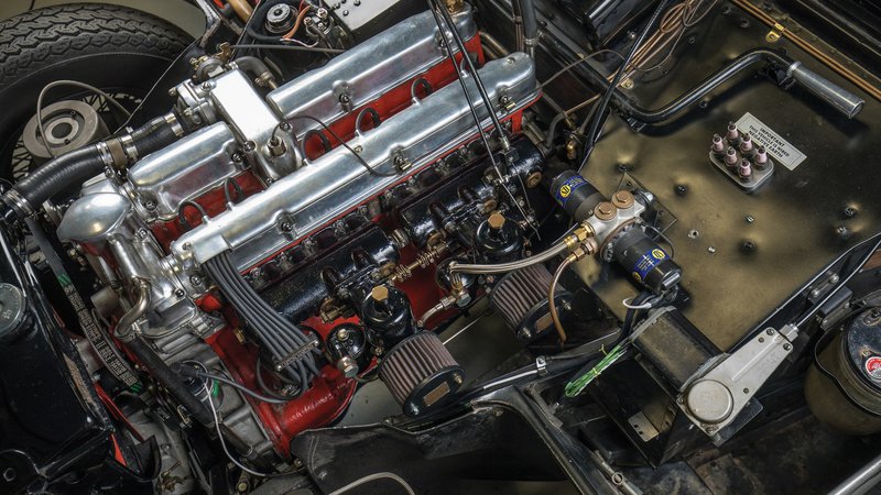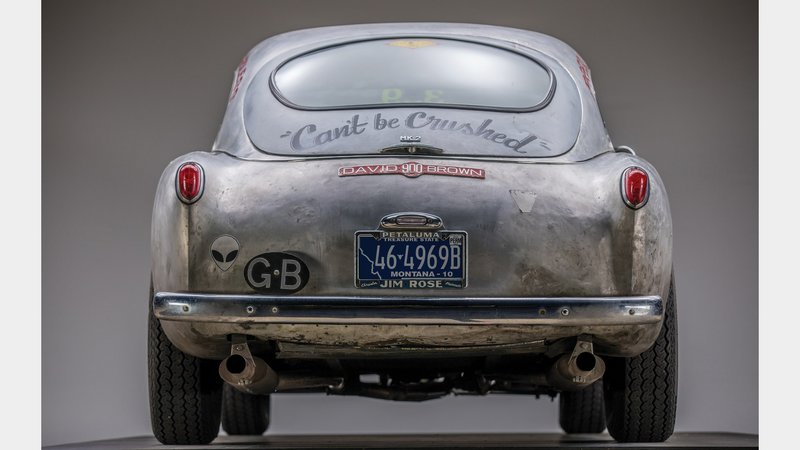 Το επιμελώς ατημέλητο παρουσιαστικό της, τα εμφανή σημάδια από την... επίμονη αγωνιστική χρήση και η ιστορία που κρύβουν πίσω τους οι αλουμινένιες επιφάνειες του αμαξώματος της συγκεκριμένης Aston Martin DB2/4 MK II δεν αφήνουν κανέναν ασυγκίνητο.