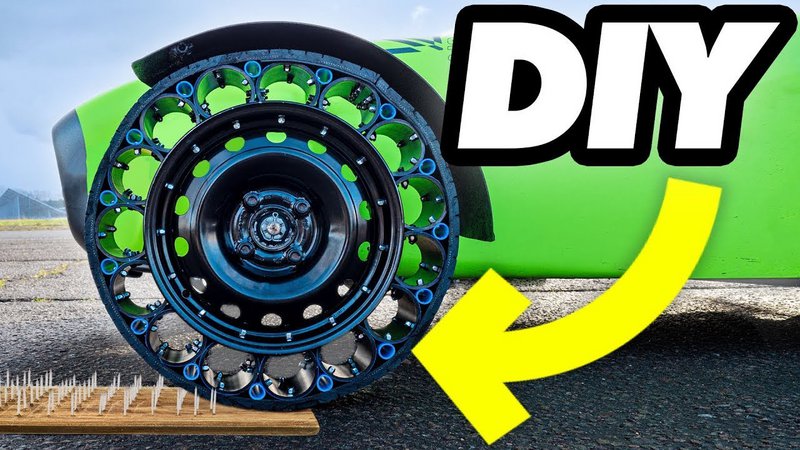 Όπως εξηγούν στο video, το οποίο θυμίζει αρκετά την εκπομπή Top Gear, για κάθε ένα από τα τέσσερα αυτοσχέδια ελαστικά χρησιμοποίησαν 15 πανομοιότυπα κομμάτια πλαστικού σωλήνα τα οποία ενσωμάτωσαν πάνω σε 14άρες μεταλλικές ζάντες από ένα παλιό Ford Mondeo. Ανάμεσα στους σωλήνες τοποθετήθηκαν αρκετοί ακόμα μικρότερου μεγέθους, ενώ η ένωση έγινε με δεκάδες βιδών.