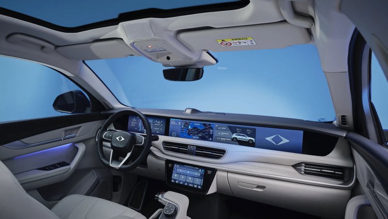 Το επίπεδο εξοπλισμού είναι πλούσιο και στο εσωτερικό δεσπόζει η μεγάλη οθόνη πολυμέσων 29 ιντσών, η οποία πλαισιώνεται από οθόνη 12,3 ιντσών για τον πίνακα οργάνων. Επιπλέον, στο κάτω μέρος της κεντρικής κονσόλας υπάρχει άλλη μία οθόνη αφής 8 ιντσών.