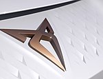 Μπροστά το μάτι πέφτει κατευθείαν στο φωτιζόμενο λογότυπο της CUPRA – ένα από τα πρώτα μοντέλα παραγωγής που φωτίζει το λογότυπό του στην Ευρώπη – το οποίο συνδυάζεται αρμονικά με τα τριγωνικής σχεδίασης φωτιστικά σώματα αλλά και με τις βαθιές ανάγλυφες επιφάνειες του καπό.