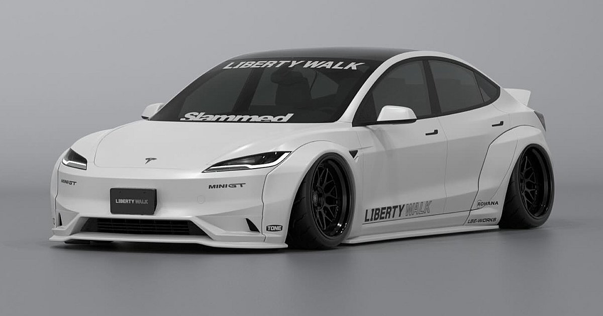 Τώρα, ήρθε η ώρα του Tesla Model 3. Το δημιούργημα των Ιαπώνων ονομάζεται επίσημα Liberty Walk Tesla Model 3 LB E Works κι έχει λάβει, μεταξύ άλλων, τεράστια φτερά πάνω από τους τροχούς που το κάνουν να μοιάζει ιδιαίτερα επιθετικό.