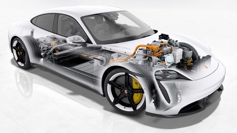 Στην «ακτινογραφία» της Porsche Taycan βλέπουμε ουσιαστικά τη δομή ενός σύγχρονου ηλεκτρικού αυτοκίνητου που διαθέτει μπαταρία, ηλεκτροκινητήρα και ηλεκτρονική μονάδα διαχείρισης ισχύος (power electronics) η οποία, μεταξύ άλλων, παραλαμβάνει συνεχές ρεύμα (DC) από την μπαταρία και το μετατρέπει σε εναλλασσόμενο (AC) με το οποίο λειτουργεί ο ηλεκτροκινητήρας. Στην περίπτωση της Taycan υπάρχουν δύο ηλεκτροκινητήρες, ένας εμπρός και ένας πίσω, ώστε να εξασφαλίζεται η μετάδοση κίνησης και στους τέσσερις τροχούς.