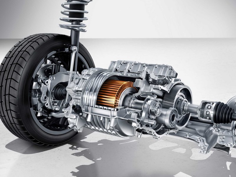 Ηλεκτροκινητήρας και σύστημα μετάδοσης της BMW iX3. Είναι φανερό πόσο πιο απλός είναι στη δομή του ένας ηλεκτροκινητήρας σε σχέση με μία ΜΕΚ. Το ίδιο ισχύει και για το σύστημα μετάδοσης, στο οποίο δεν υπάρχει κιβώτιο ταχυτήτων, αφού η διαθέσιμη ροπή καλύπτει τις ανάγκες του οχήματος σε όλες τις φάσεις της κίνησης και ο οδηγός οδηγεί όπως θα οδηγούσε ένα «αυτόματο» αυτοκίνητο. Μέσα στο σχήμα: Δρομέας (ρότορας), Στάτης, Σύστημα μετάδοσης (με διαφορικό).