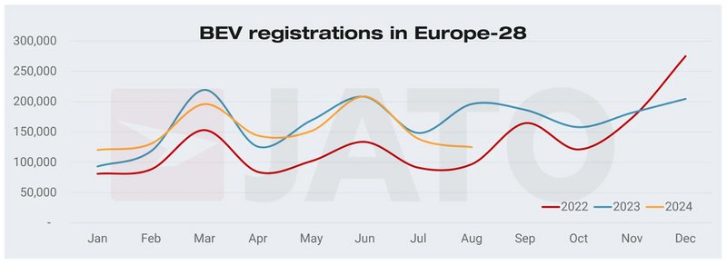 Αυτό οφείλεται στο ότι ο Αύγουστος του 2024 ήταν ένας κακός μήνας συνολικά για την αγορά αυτοκινήτου, αφού σύμφωνα με τα στοιχεία της JATO Dynamics για 28 ευρωπαϊκές αγορές, τον μήνα αυτό ταξινομήθηκαν 753.482 νέα αυτοκίνητα. Πρόκειται για μείωση 16% σε σχέση με τις 899.881 μονάδες που καταγράφηκαν τον ίδιο μήνα πέρυσι και τη μεγαλύτερη πτώση σε μηνιαία βάση (από την αρχή του έτους) από τον Ιούνιο του 2022.