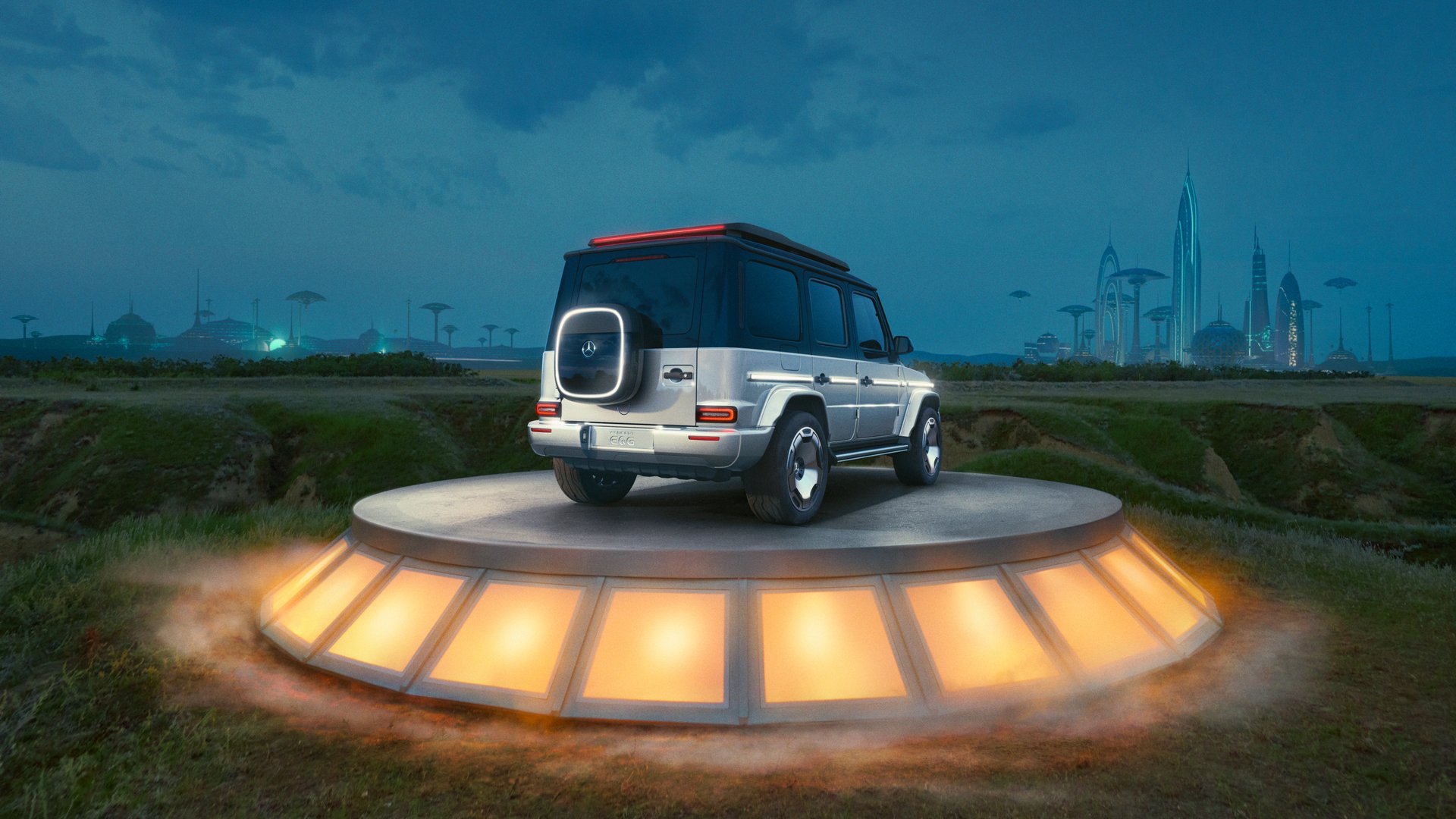 Η Mercedes λέει ότι αυτό το πρωτότυπο είναι ένα βήμα πριν την παραγωγή. Πατάει σε τροχούς 22 ιντσών και διαθέτει πολλές φωτιζόμενες LED λεπτομέρειες όπως στην εμπρός μάσκα, τους καθρέφτες, την οροφή και το περίγραμμα του καλύμματος της ρεζέρβας στην πίσω πόρτα. Για να είμαστε απόλυτα ακριβείς βέβαια, η ρεζέρβα έχει αφαιρεθεί από εκεί και στη θέση της αποθηκεύεται το καλώδιο φόρτισης.