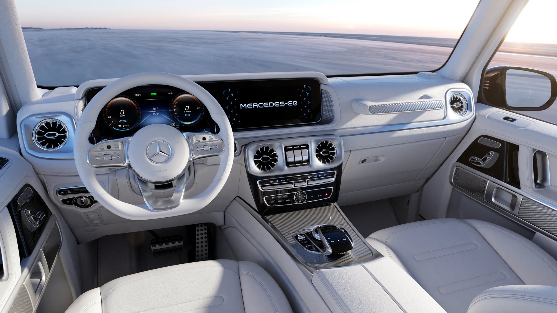 Η κεντρική ιδέα των EQ μοντέλων είναι εμφανής και στο εσωτερικό με τον πλούσιο ατμοσφαιρικό φωτισμό, την πολυτέλεια και την υψηλή τεχνολογία, με κάποιες πιο macho πινελιές που ταιριάζουν περισσότερο στο χαρακτήρα του G-Wagen.
