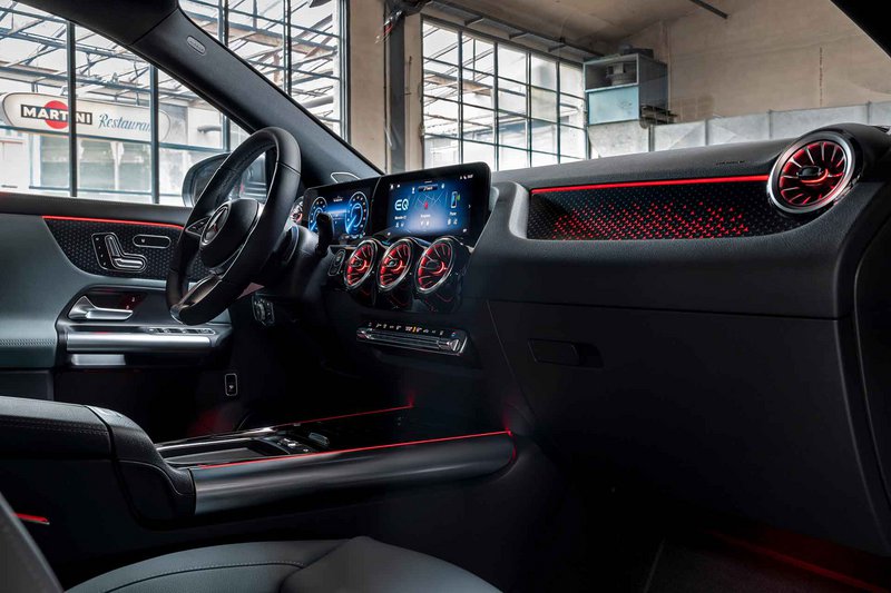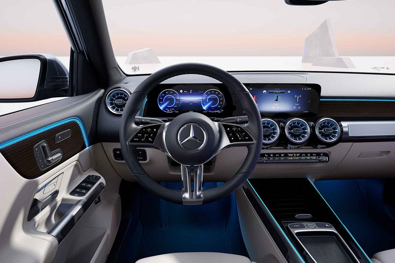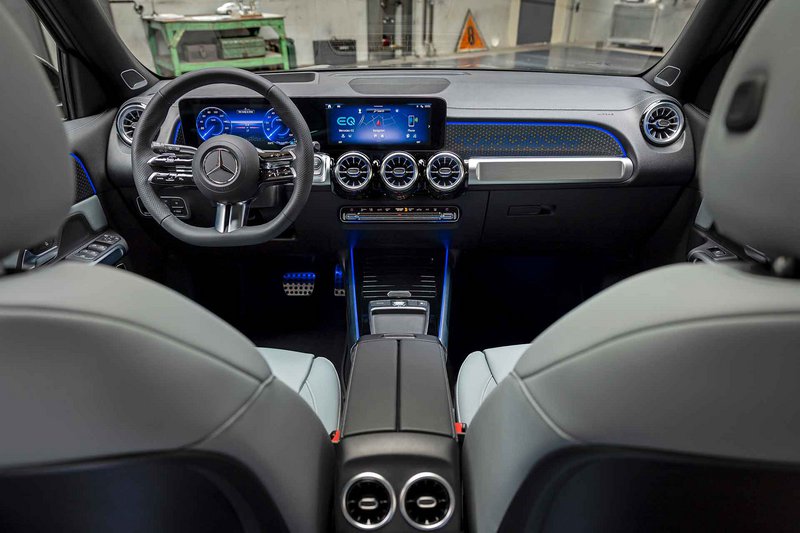 Στο εσωτερικό, το τιμόνι νέας γενιάς περιλαμβάνει πλήκτρα αφής, την ώρα που η εμφάνιση των οθονών έχει επίσης αναθεωρηθεί και προσαρμοστεί σε αυτό των μεγαλύτερων μοντέλων. Τόσο η EQA όσο και η EQB διαθέτουν, πλέον, μια ενημερωμένη γενιά του συστήματος MBUX, με τρία στιλ εμφάνισης στην οθόνη των 10,25 ιντσών και τρεις διαφορετικές λειτουργίες, ενώ υπάρχουν 10 διαφορετικά χρώματα εσωτερικού φωτισμού.