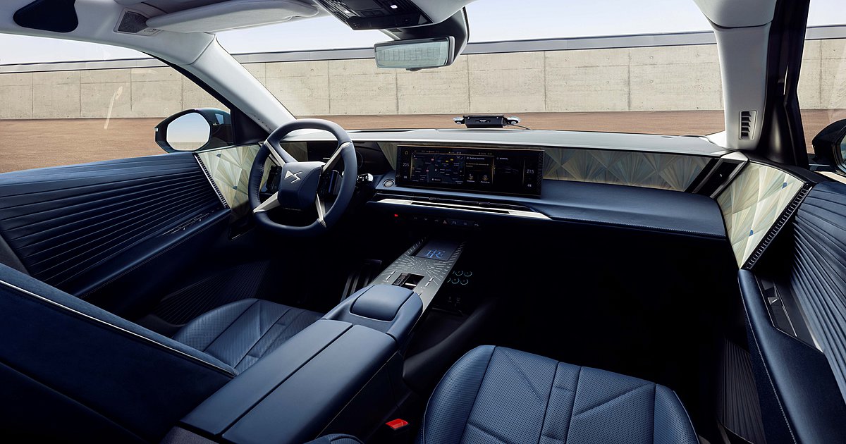 Εξαιρετικής ποιότητας και πολυτέλειας είναι και τα σατέν υφάσματα Dream Blue που επενδύουν το εσωτερικό από το Verel de Belval. Τα καθίσματα είναι επενδυμένα με Alcantara και δέρμα Nappa σε μοτίβο μπρασελέ ρολογιού σε χρώμα Dream Blue. Όλα τα σημεία όπου χρησιμοποιείται σατέν και πλισέ έχουν καλυφθεί και προστατευτεί. Η μαργαριταρένια ραφή “Pearl stitching”, επίσης σήμα κατατεθέν της DS και ορατή στα μοντέλα παραγωγής, έχει προστεθεί στις επενδύσεις των θυρών και του ταμπλό. Το ηχοσύστημα είναι της FOCAL που ειδικεύεται στον σχεδιασμό και την παραγωγή ηχοσυστημάτων υψηλής ποιότητας.