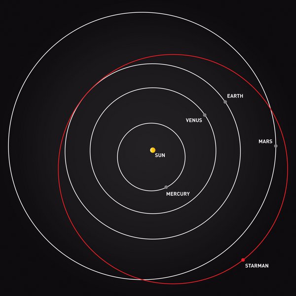 Το Roadster εκτοξεύτηκε σε μια τροχιά που αρχικά στόχευε την τροχιά του Άρη, αλλά λόγω της ισχυρότερης ώθησης από το αναμενόμενο, κατέληξε σε μια ελλειπτική τροχιά γύρω από τον Ήλιο, φτάνοντας ακόμα πιο μακριά από την τροχιά του Άρη.
