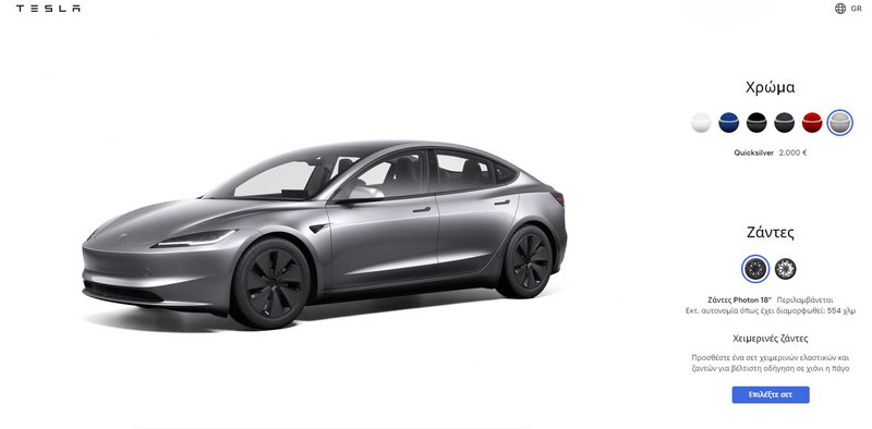 Ακόμα μία χρωματική επιλογή αμαξώματος προστέθηκε πριν από λίγες ώρες στον διαμορφωτή του Tesla Model 3, το ασημί Quicksilver.