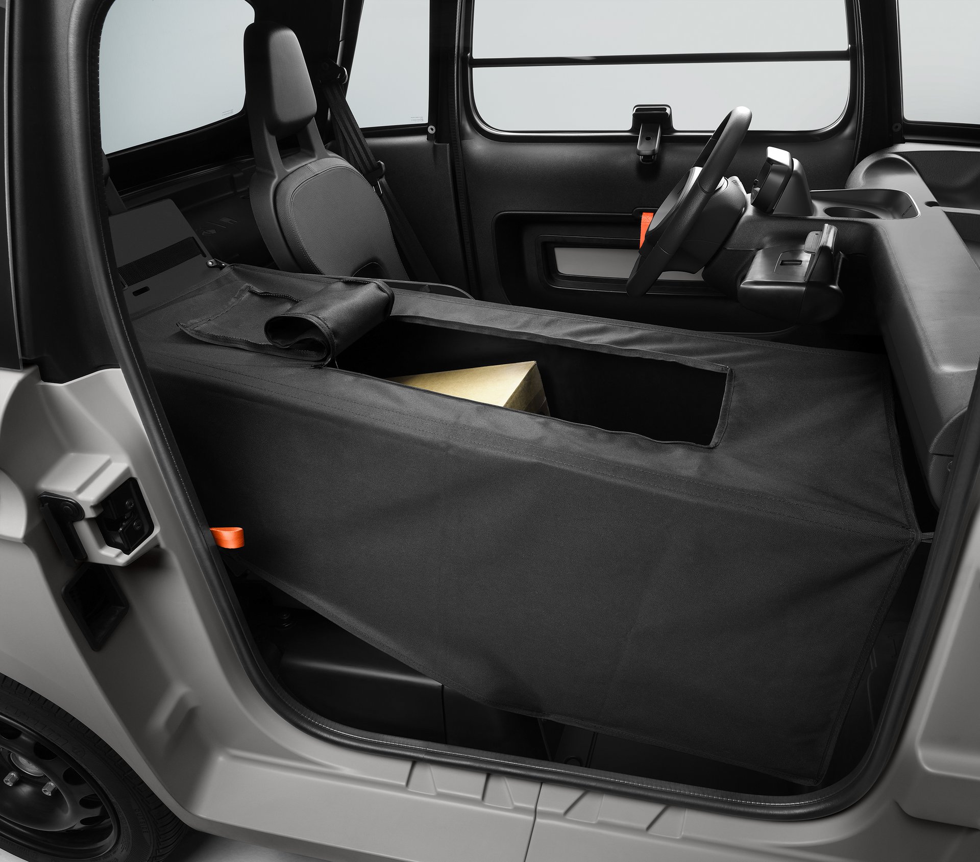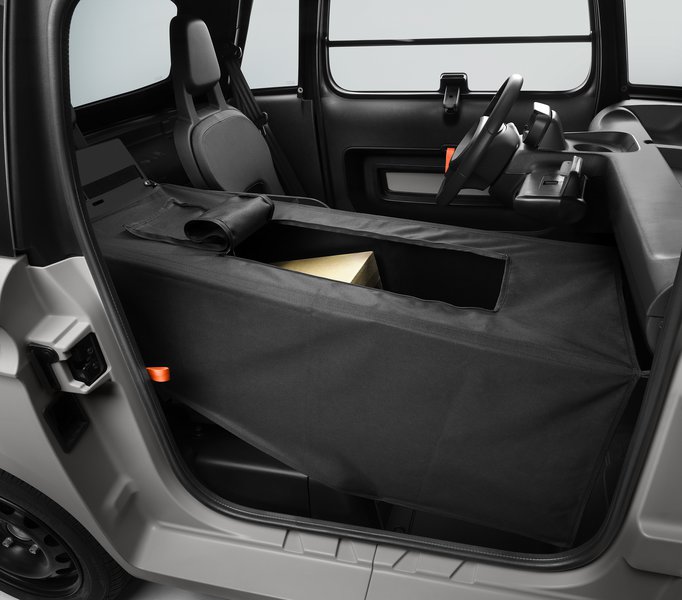 Περνώντας στο εσωτερικό, βρίσκει κανείς όλον τον βασικό εξοπλισμό, στον οποίο περιλαμβάνεται μια βάση για smartphone, δίχτυα στις πόρτες για την αποθήκευση αντικειμένων, ένα κεντρικό διαχωριστικό δίχτυ, έναν κίτρινο γάντζο για τσάντες, όπως και τρεις πορτοκαλί αποθηκευτικοί κάδους.
