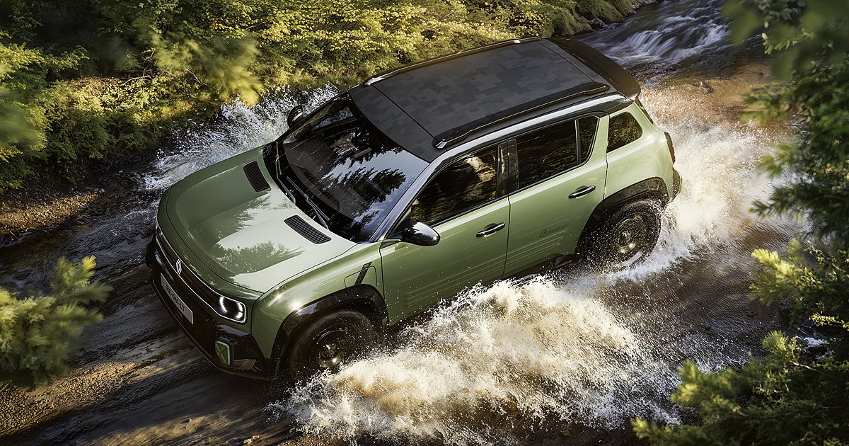 Πρόκειται για το Renault 4 Savane 4x4 Concept, το οποίο κάνει ακριβώς αυτό που υπόσχεται: Φέρει δύο ηλεκτροκινητήρες που προσφέρουν τετρακίνηση και είναι έτοιμο να αντιμετωπίσει κάθε πρόκληση. Η Renault έχει βάψει το αμάξωμα στην απόχρωση Jade Green και το έχει εξοπλίσει με μια ανασηκωμένη ανάρτηση, αυξάνοντας την απόσταση του πατώματος από το έδαφος κατά 15 mm.