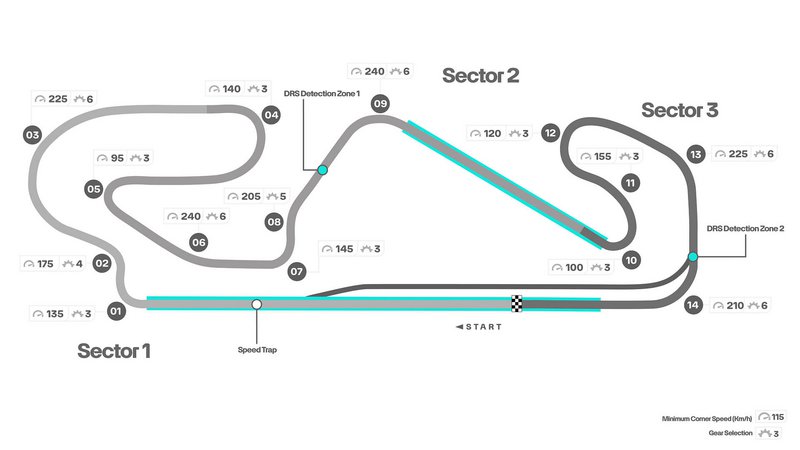 Η πίστα της Καταλονίας με μήκος 4.657m και σχήμα σαν τιμόνι F1 (της McLaren του Μίκα Χάκινεν) είναι γνωστή σε οδηγούς και ομάδες, που πραγματοποιούσαν εκεί στο παρελθόν, δοκιμές εξέλιξης. Πιθανόν, στις κατατακτήριες δοκιμές να δούμε το φαινόμενο της ομοιομορφίας, δηλαδή τα δύο μονοθέσια της ίδιας ομάδας στην ίδια σειρά εκκίνησης. Αυτό συμβαίνει γιατί στη συγκεκριμένη πίστα παίζουν κυρίαρχο ρόλο τα χαρακτηριστικά των μονοθέσιων, η αεροδυναμική τους απόδοση και η ισχύς της υβριδικής μηχανής.