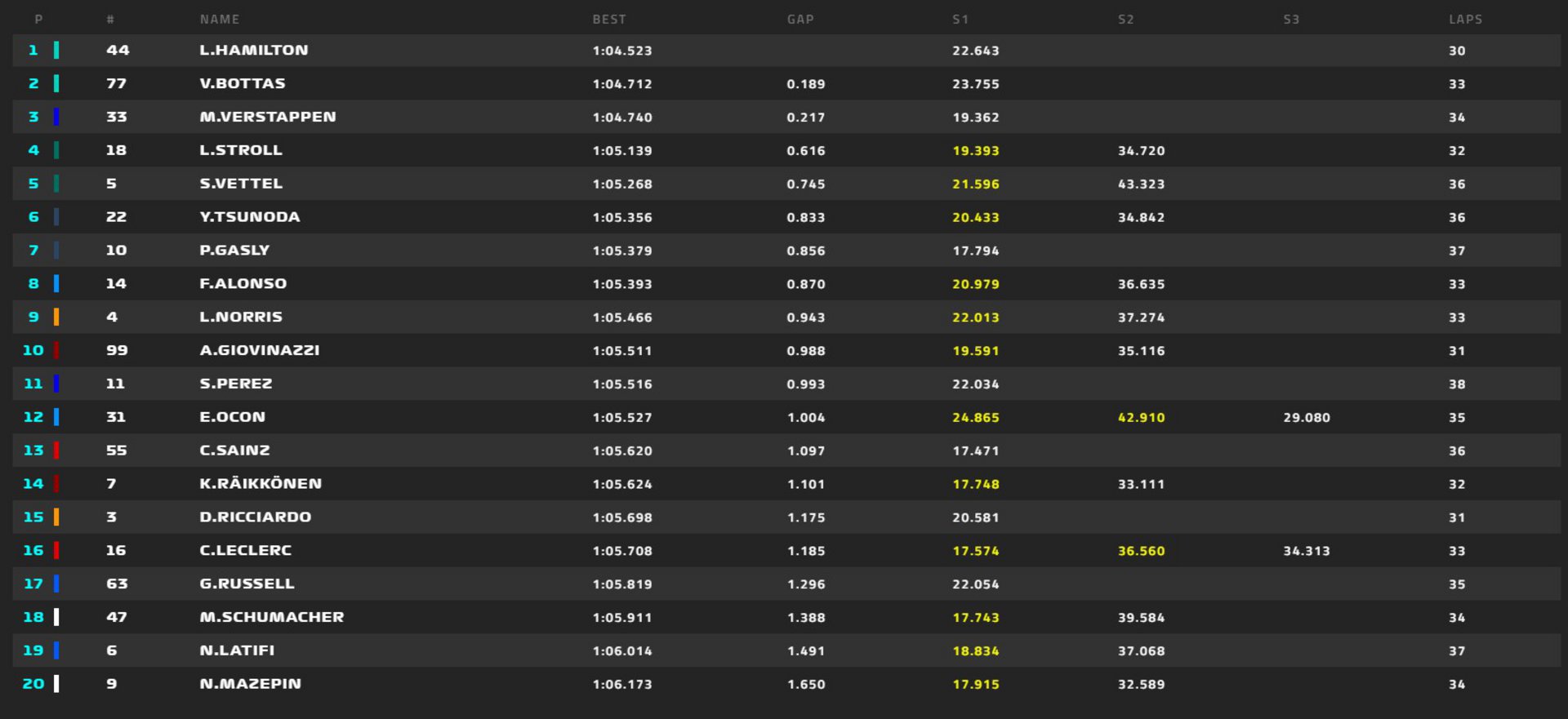 Πιο συγκεκριμένα, ο Lewis Hamilton «εκθρόνισε» τον Max Verstappen από την πρώτη θέση, και μαζί με τον 2ο Valtteri Bottas, ολοκλήρωσαν ένα Παρασκευιάτικο 1-2 για τη Mercedes, με τον Ολλανδό πρωτοπόρο στη βαθμολογία να μένει 3ος.