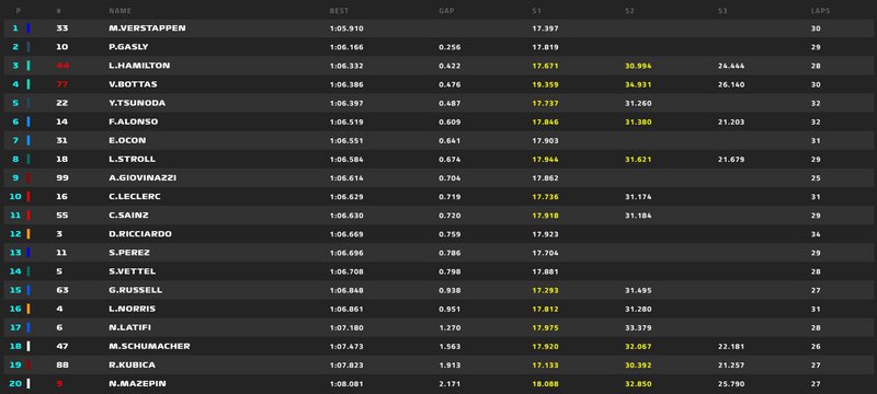 Τον ακολούθησε ο άλλοτε teammate του, Pierre Gasly, με διαφορά σχεδόν 3 δεκάτων του δευτερολέπτου από τον Ολλανδό.