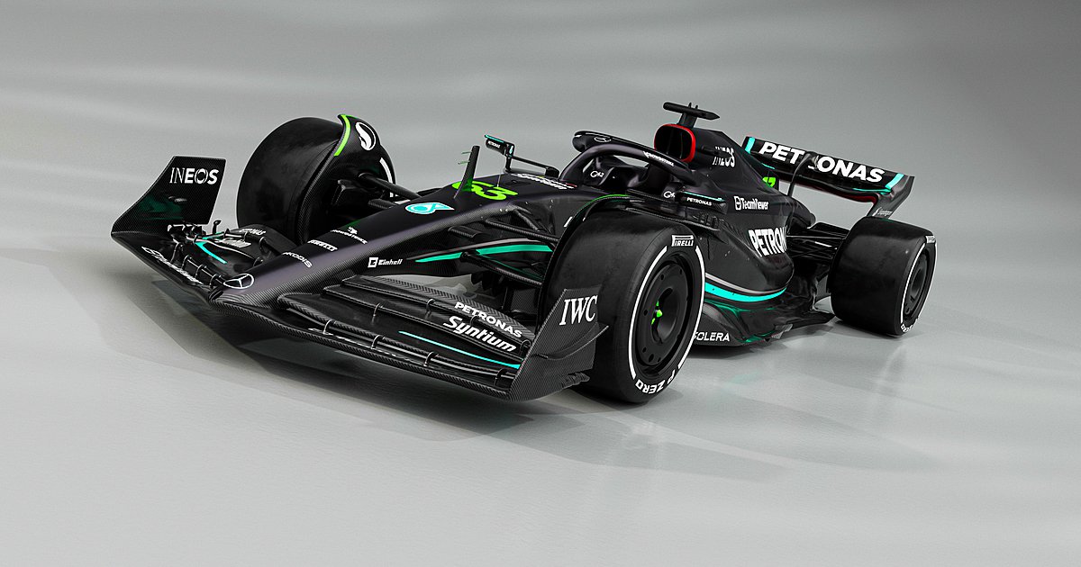 Η πρώτη αλλαγή που εντοπίζει κανείς είναι η επιστροφή στο μαύρο livery, ενώ σχεδιαστικά η Mercedes επιμένει στο zero-pod, τα πολύ λεπτά και κάθετα sidepods.