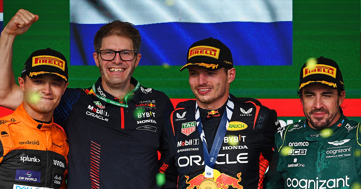 Ο Ολλανδός προηγείτο του αγώνα στο Interlagos με διαφορά περί των 8 δευτερολέπτων από τον Lando Norris, οπότε στον... ελεύθερο χρόνο του, επέλεξε να κοιτάξει στις γιγαντοοθόνες στην πίστα για τη μάχη ανάμεσα στον teammate του και τον οδηγό της Aston Martin.