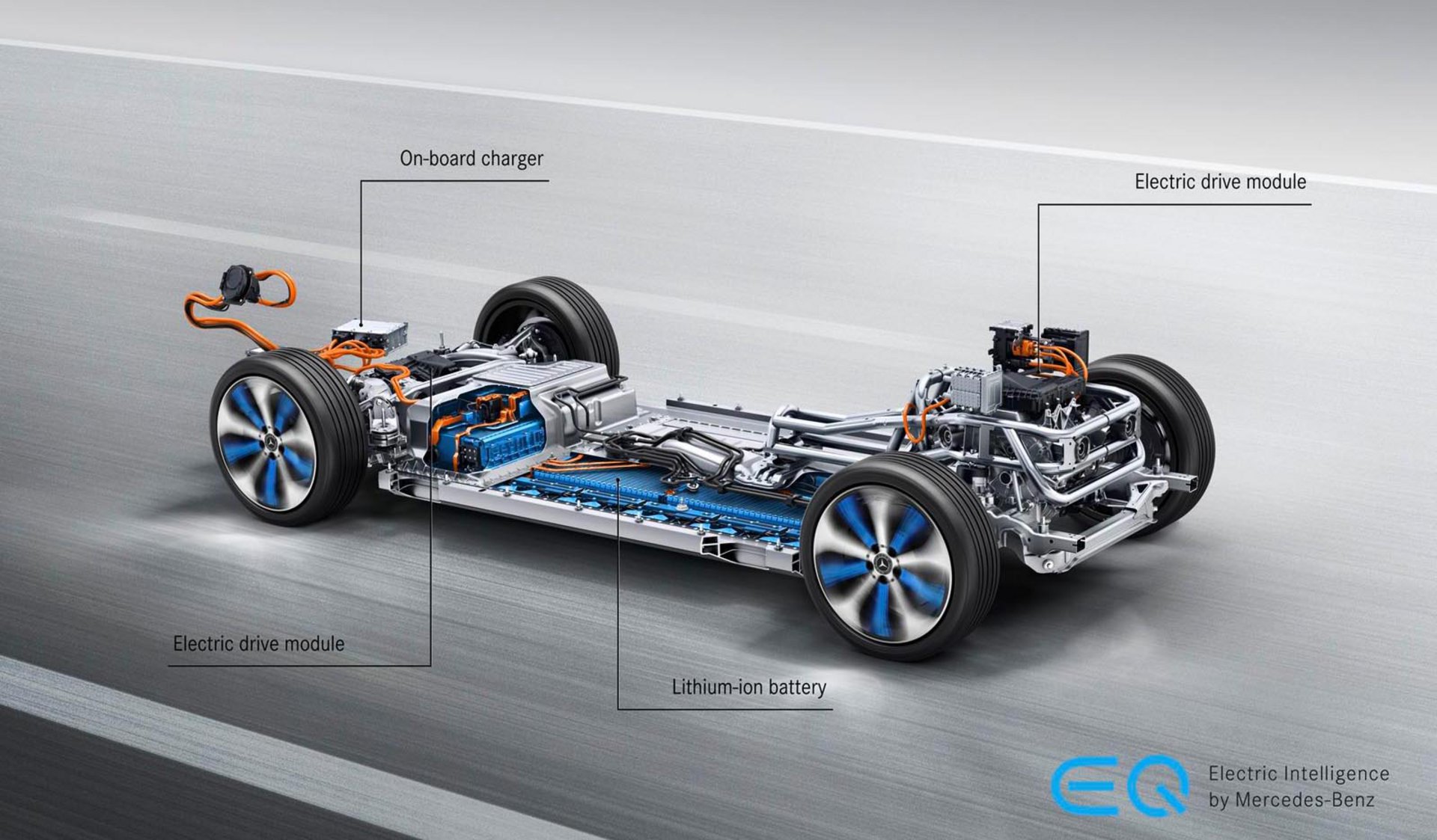 Το σύστημα πρόωσης της έκδοσης EQC 400 περιλαμβάνει δύο ηλεκτροκινητήρες, έναν στον μπροστινό άξονα και έναν στον πίσω. Η συνδυαστική ισχύς και των δύο ανέρχεται στους 408 PS με μέγιστη ροπή στα 765 Nm και η μπαταρία βάρους 650 kg είναι ενεργειακής χωρητικότητας 80 kWh για να διασφαλίζει μία αυτονομία στα 450 km σε κύκλο NEDC (στα 400 km βάσει WLTP) με μέση κατανάλωση στις 22,2 kWh. Σχετικά με τις επιδόσεις η διαδικασία των 0-100 km/h διαρκεί 5,1 sec με την τελική ταχύτητα να περιορίζεται στα 180 km/h.