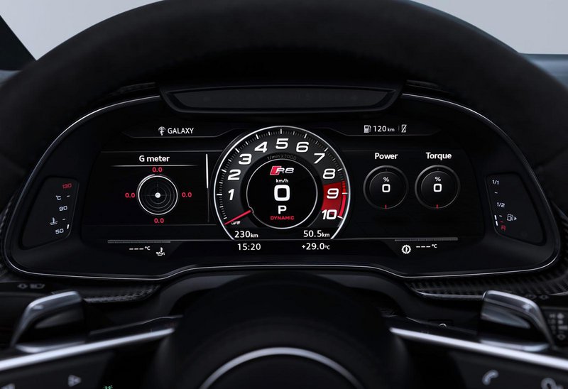 Σχετικά με τον V10 των 5,2 lt η ισχύς του έχει αυξηθεί από τους 540 PS στους 570 PS (η ροπή στα 550 Nm), ενώ στο κορυφαίο Performance τα άλογα έχουν ανέβει στα 620 και η ροπή στα 580 Nm. Το 0-100 για το βασικό R8 είναι στα 3,4 sec (3,5 για το Spyder) και στα 3,1 sec για το Performance (3,2 sec για το Spyder). Ανάλογα με την έκδοση το βάρος έχει αυξηθεί έως 20 kg λόγω των αναβαθμίσεων ελέω WLTP μετρήσεων.