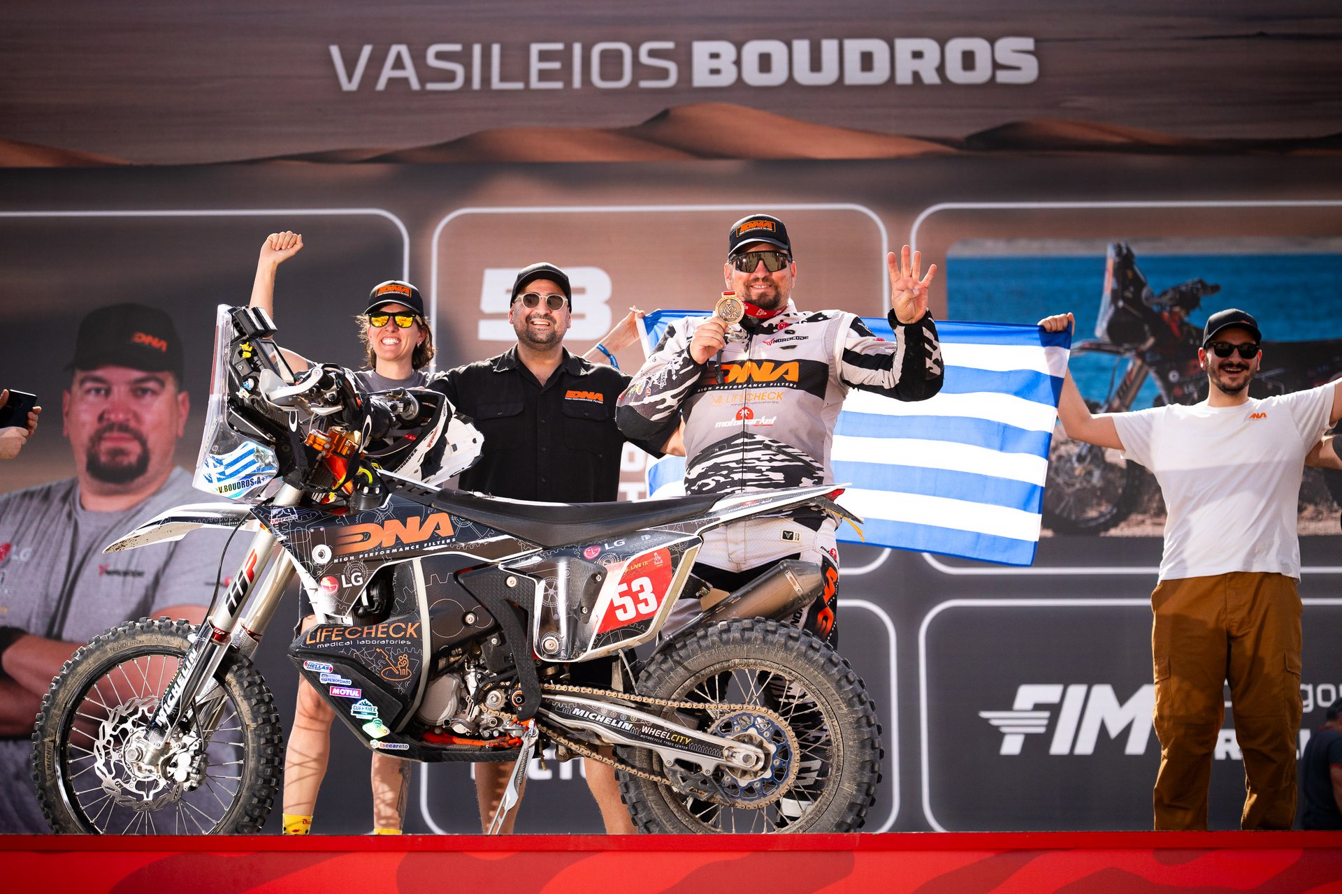 Ο Βασίλης Μπούδρος, αγωνιζόμενος στην κατηγορία Original by Motul - όπου οι αναβάτες τρέχουν χωρίς υποστήριξη, συντηρώντας οι ίδιοι τις μοτοσυκλέτες τους - με την υποστήριξη της DNA Filters και μοτοσυκλέτα ΚΤΜ, έφερε το καλύτερο αποτέλεσμα σε συμμετοχή του σε Dakar, έχοντας τρέξει ξανά το 2022 (70ος), 2024 (81ος) και 2025 (53ος).