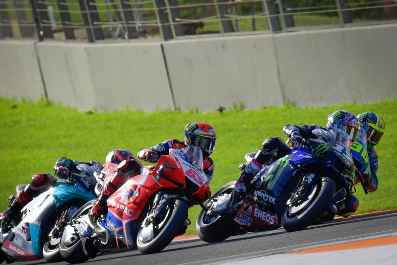 Εκείνη τη στιγμή οι εργοστασιακές Yamaha των Maverick Vinales και Vanentino Rossi οδηγούσαν την κούρσα από τη λάθος άκρη της, εκεί όπου σύντομα ήρθε να τους συναντήσει και ο Quartararo.