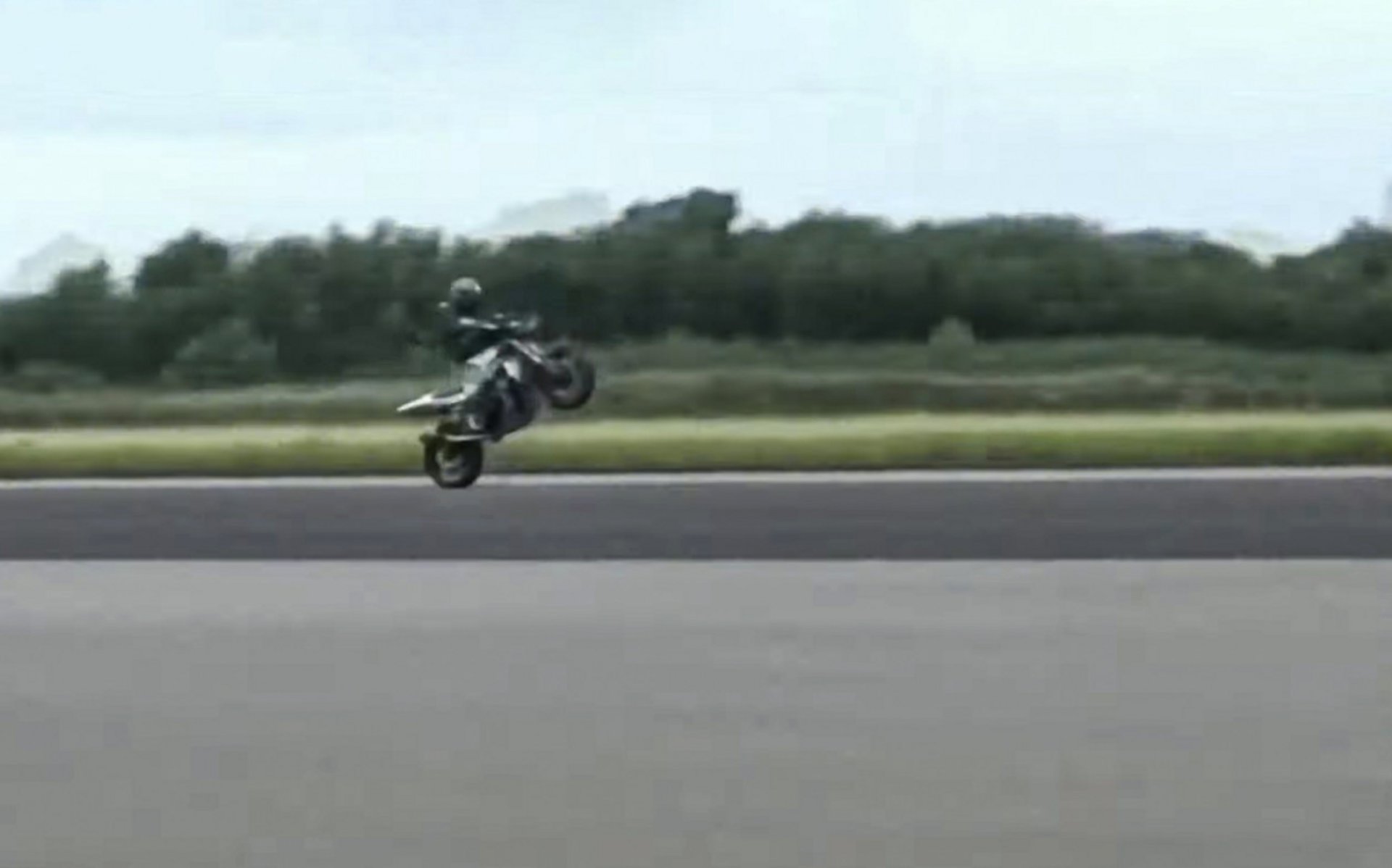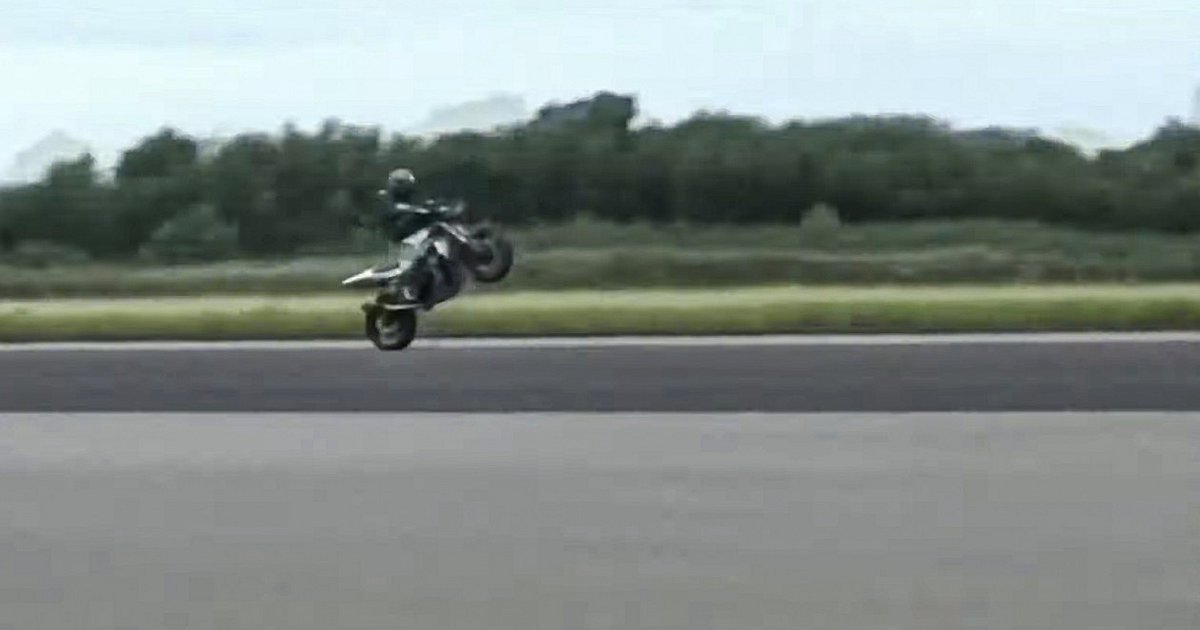Ο αναβάτης κατάφερε να σουζάρει την μοτοσυκλέτα του και να επιταχύνει μέχρι τα 175,7 χλμ/ώρα, καθήμενος στο τιμόνι και με τα πόδια μπροστά.