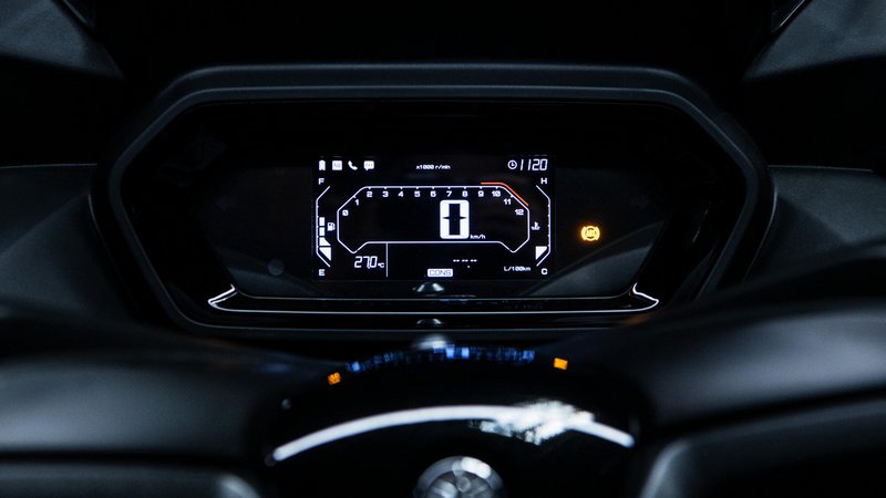 Επιπλέον η άνεση και η ασφάλεια αποκτούν νέο ορόσημο χάρη στα υψηλής απόδοσης LED φωτιστικά σώματα εμπρός και πίσω, και το μπροστινό πιρούνι τύπου μοτοσυκλέτας που εξασφαλίζει σταθερότητα και κορυφαία οδηγική αίσθηση.