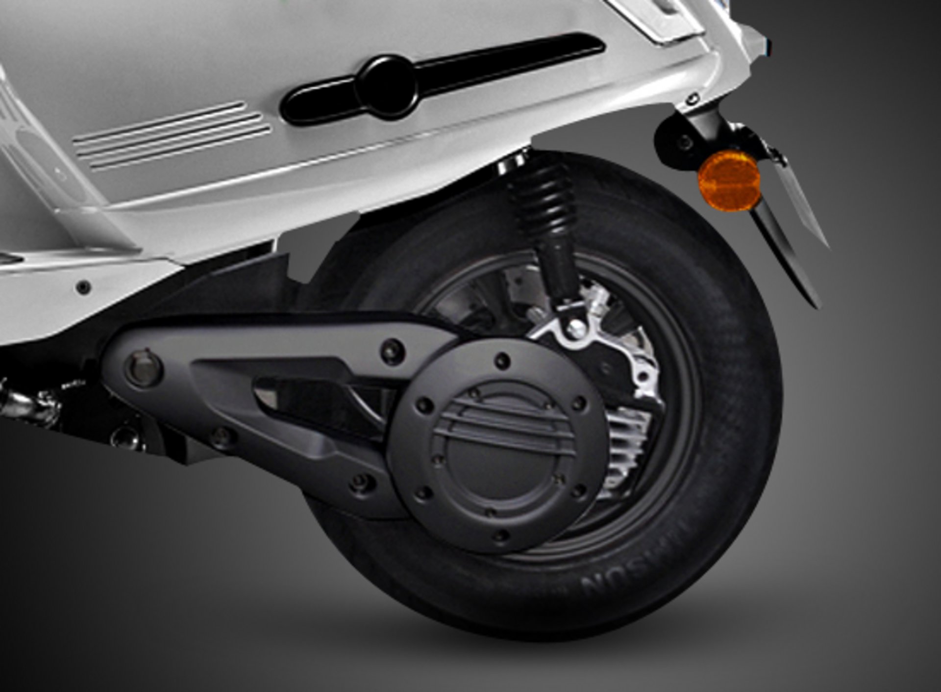 Στα περισσότερα ηλεκτρικά σκούτερ της αγοράς ο κινητήρας αποτελεί ουσιαστικά και τη ζάντα του τροχού, οδηγώντας συχνά σε καταπόνηση του μοτέρ από τις ανωμαλίες του δρόμου. Ο κινητήρας του DIVA125e είναι τοποθετημένος στον πίσω τροχό, αλλά στην αριστερή πλευρά του ψαλιδιού, με σαφές πλεονέκτημα έναντι των κινητήρων που αποτελούν παράλληλα και ζάντα του οχήματος.