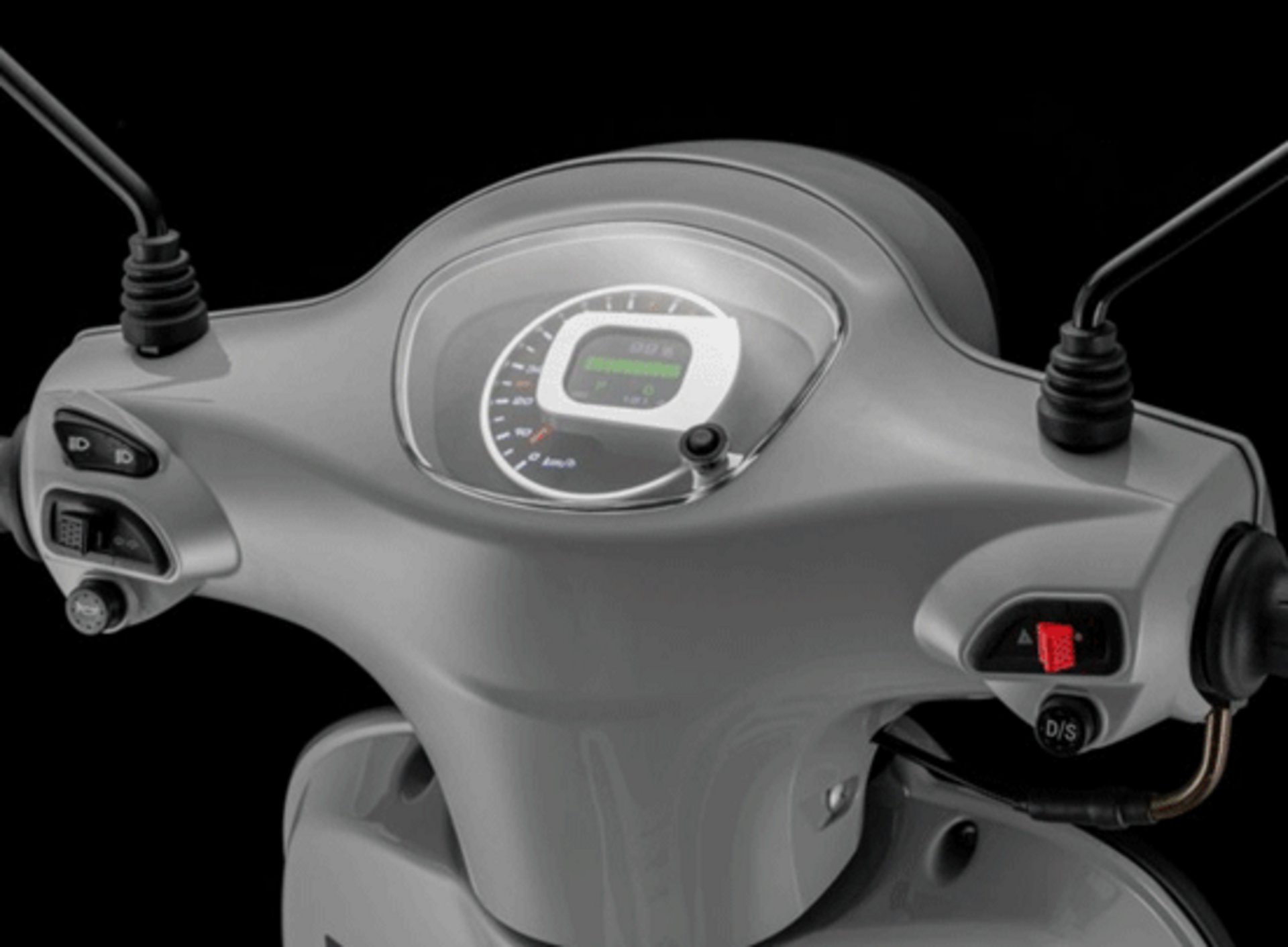 Πίνακας Οργάνων TFT LED – Η κεντρική οθόνη περιλαμβάνει αναλογικό ταχύμετρο, διατηρώντας το ρετρό χαρακτήρα της Diva, ενώ προσαρμόζει τα χρώματά της ανάλογα με τις συνθήκες φωτισμού, ώστε να είναι πάντα ευδιάκριτη. Στις ενδείξεις περιλαμβάνονται επίσης το επίπεδο φόρτισης της μπαταρίας, το επιλεγμένο πρόγραμμα ταχύτητας D(ECO)/ S (SPORT) και ολικός και μερικός χιλιομετρητής.