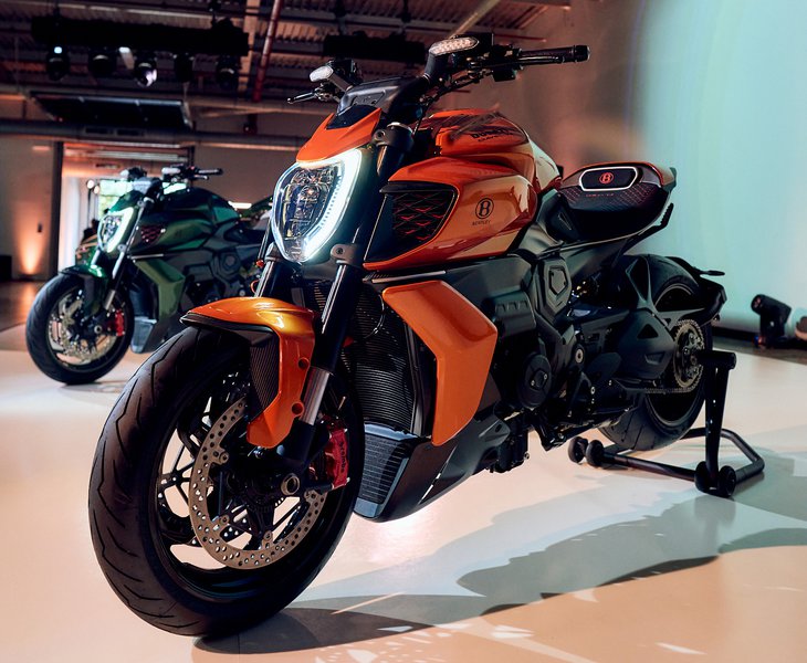 Πολλά από τα εξαρτήματα του είναι κατασκευασμένα από ίνες άνθρακα, όπως τα winglets, το κάλυμμα προβολέα, τα καλύμματα κινητήρα, της εξάτμισης και του ψυγείου, τα πλαϊνά πάνελ αλλά και η ουρά, με τις «κυριλέ» λεπτομέρειες να είναι παντού, όπως στη σέλα σε μαύρο Alcantara, η οποία είναι εμπνευσμένη από το εσωτερικό του αυτοκινήτου, με το λογότυπο Bentley κεντημένο στο πίσω μέρος. Η εξάτμιση έχει επίσης επανασχεδιαστεί για να εναρμονίζεται με τις γραμμές της μοτοσυκλέτας.