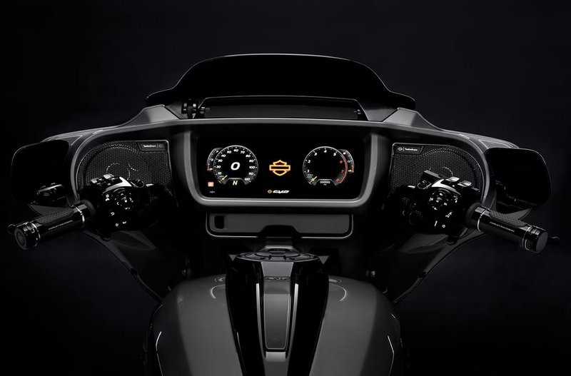 Το Road Glide μοντέλο διαφοροποιείται ως προς το σχήμα του εμπρόσθιου φέρινγκ, αλλά και το γεγονός ότι το τελευταίο είναι σταθερό και όχι «πακτωμένο» πάνω στο τιμόνι. Ο φωτισμός φυσικά είναι LED και στην περίπτωση του Road Glide, με νέο φωτιστικό σώμα εμπρός που ενσωματώνει και τα φλας, ενώ ο αναβάτης έχει περισσότερες δυνατότητες ρύθμισης της ροής του αέρα. Το τιμόνι της Road Glide έχει αλλάξει σχήμα και είναι φαρδύτερο, αλλά και πιο επίπεδο, ενώ ρυθμίζεται σε εύρος 27 μοιρών. Εννοείται ότι και το Road Glide, λαμβάνει την οθόνη του infotainment συστήματος, αλλά και το ηχοσύστημα, που τοποθετούνται στο Street Glide.
