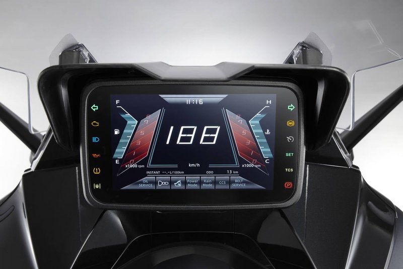 Το εμπρός σύστημα με τους δύο τροχούς προσφέρει δυνατότητα κλίσης στο όχημα, όπως σε μία συμβατική μοτοσυκλέτα, με μέγιστη ανακοινώσιμη γωνία κλίσης τις 40 μοίρες. Σημαντική προσπάθεια έχει γίνει για την μείωση του βάρους του οχήματος, αν και η ιδιαιτερότητα της κατασκευής και του εμπρός συστήματος φέρνουν την τελική τιμή στα 287 κιλά, με όλα τα υγρά.