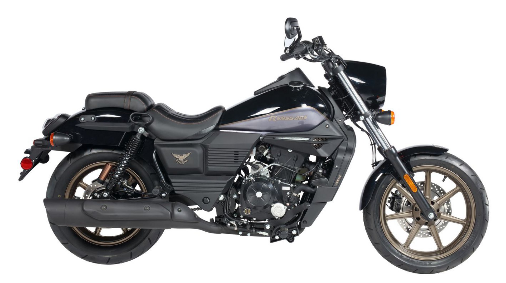 Το Renegade Sport είναι ένα ελαφρύ cruiser που διαθέτει σπορ και ελκυστικές λεπτομέρειες, χαρίζοντας απαράμιλλη αίσθηση με την ισορροπημένη και πολύ άνετη εμπειρία οδήγησης που προσφέρει. Στην εμφάνισή του ξεχωρίζει ο κλασσικός στρογγυλός προβολέας, οι χυτές ζάντες με 7 ακτίνες και η εξάτμιση σε μαύρη ματ βαφή. Παράλληλα, το τιμόνι τύπου chopper, η φαρδιά σέλα και η πλάτητουσυνεπιβάτη, το ύψος από το έδαφος έως τη σέλα των 735 mm, είναι μόνοκάποια από τα πολυάριθμα πλεονεκτήματα που καθιστούν το Renegade Sport εύκολο στην οδήγηση για κάθε αναβάτη, ανεξαρτήτως φύλου ή ηλικίας.Ο αερόψυκτος, τετράχρονος μονοκύλινδρος κινητήρας των 125cc,με συγχρονισμένο κιβώτιο ταχυτήτων 5 σχέσεων για μέγιστηδυνατή ροπή, ταιριάζει απόλυτα στο χαρακτήρα του μοντέλου.