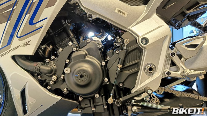 Το 703 RR επιδεικνύει πλήρως αλουμινένια κατασκευή πλαισίου και υποπλαισίου, όπως και ψαλιδιού – και το αλουμίνιο δεν είναι απλώς prestige υλικό επιδόσεων, αλλά και σημαντικά ακριβότερο από το ατσάλι. Ο κινητήρας, τρικύλινδρος εν σειρά ονομαστικής απόδοσης 95,2 ίππων, είναι «κλασικής» διάταξης στροφαλοφόρου με τα κομβία στις 120 μοίρες, αλλά φέρει «συμβατικό» ψεκασμό με ντίζες και όχι ride-by-wire 100%. Αυτό απλοποιεί την κατασκευή, μειώνει το κόστος και κάνει την απόκριση πιο άμεση, ωστόσο «χάνοντας» πράγματα όπως την δυνατότητα τοποθέτησης Quickshifter για ανεβάσματα και κατεβάσματα. Το τελευταίο, υπάρχει και λειτουργεί στα ανεβάσματα. Traction Control υπάρχει επίσης, ενώ προβλέπονται 2 χαρτογραφήσεις ισχύος (ECO και Sport).