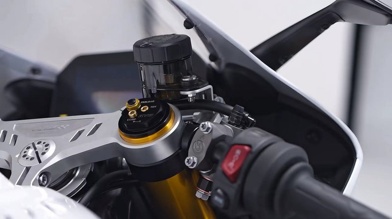 Οι φωτογραφίες που έχουν κυκλοφορήσει ως τώρα είναι οι μοναδικές "επίσημες" (μ' αυτές αποκλειστικά και μόνο φτιάχτηκε και το προωθητικό βίντεο της ZXMOTO που θα βρείτε στο τέλος του άρθρου) και απεικονίζουν την έκδοση 820RR-R, στην οποία απολαμβάνουμε πλήρως ρυθμιζόμενο ανεστραμμένο πιρούνι ΚΥΒ με αντιτριβική επίστρωση DLC στα καλάμια και μπροστινό φρένο με την εκλεκτότατη υπογραφή Brembo Stylema.