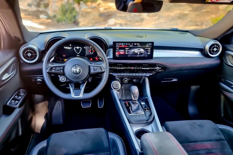Ο βασικός εξοπλισμός είναι όπως πάντα παραπάνω από πλούσιος αφού μεταξύ άλλων περιλαμβάνει ψηφιακό πίνακα οργάνων 12,3” και οθόνη infotainment 10,25” με πλοήγηση, εμπρός-πίσω αισθητήρες στάθμευσης και κάμερα οπισθοπορείας, ηλεκτρικά ρυθμιζόμενη οσφυϊκή υποστήριξη στο κάθισμα του οδηγού, σύστημα εισόδου χωρίς κλειδί, αυτόματο διζωνικό κλιματισμό με αισθητήρα ποιότητας αέρα, βάση ασύρματης φόρτισης κινητού, ενεργό cruise control, Apple CarPlay/Android Auto και πεντάλ αλουμινίου. Επιπλέον υπάρχει ένα πληρέστατο πακέτο συστημάτων υποβοήθησης του οδηγού, καθώς και οι υπηρεσίες συνδεσιμότητας Alfa Connect, για απομακρυσμένο έλεγχο συγκεκριμένων λειτουργιών του αυτοκινήτου.
