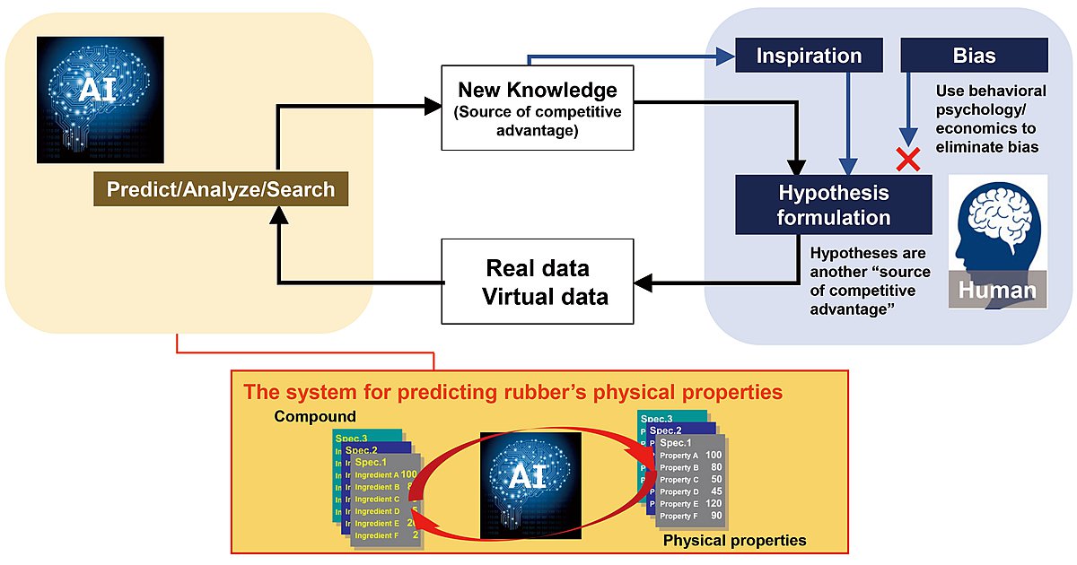 Η βιομηχανία ελαστικών YOKOHAMA, στοχεύει στην απόκτηση νέων γνώσεων δημιουργώντας και συλλέγοντας δεδομένα με βάση υποθετικές συνθήκες, που ορίζονται από τους ανθρώπους και στη συνέχεια εφαρμόζοντας AI επιτυγχάνεται πρόβλεψη και ανάλυση για την αναζήτηση του βέλτιστου αποτελέσματος. Η βιομηχανία ελαστικών YOKOHAMA έχει προχωρήσει στις τεχνολογικές εξελίξεις χρησιμοποιώντας το AI στις διαδικασίες σχεδιασμού και ανάπτυξης υλικών και ελαστικών.