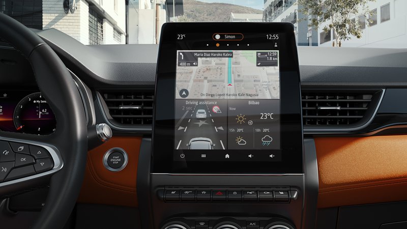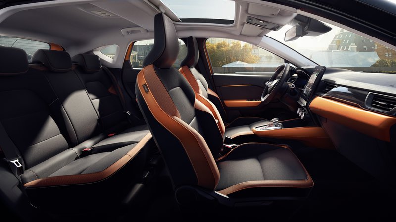 Στο εσωτερικό η εικόνα του Clio αποτυπώνεται σχεδόν αυτούσια, με τη νέα οδηγοκεντρική φιλοσοφία Smart Cockpit, σχεδίαση και επιλογή μαλακών στην αφή υλικών, ανώτερων κατηγοριών αλλά και οθόνες (τις μεγαλύτερες στην κατηγορία) όπως είναι η κεντρική, αφής των 9,3 ιντσών. Η οποία με τη σειρά της ενσωματώνει τη νέα γενιά infotainment, Renault EASY LINK και το νέο προϊόν της συνεργασίας της Renault με την Bose, το Fresh Air Speaker που δίνει καλύτερο μπάσο χωρίς την ανάγκη μεγάλων καμπινών, ενώ διατίθενται και tweeter για τους πίσω επιβάτες.