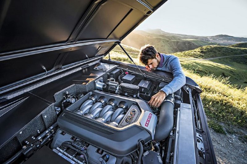 Πώς κινείται στο δρόμο; Στιβαρό και δυνατό σαν μία μικρή Mercedes-Benz G-Class. Τίποτα δεν τρέμει, τίποτα δεν τρίζει. Ο V8 ακούγεται πολύ, στέλνοντας και τη ροπή του στους άξονες, οι οποίοι είναι ικανοί να σας μεταφέρουν σε πολλές περιπέτειες. Αλλά το καλύτερο απ’ όλα είναι το εξής: αποκτάτε άμεσα την αίσθηση ότι αυτό το αυτοκίνητο μπορεί να αντιμετωπίσει οποιοδήποτε έδαφος.