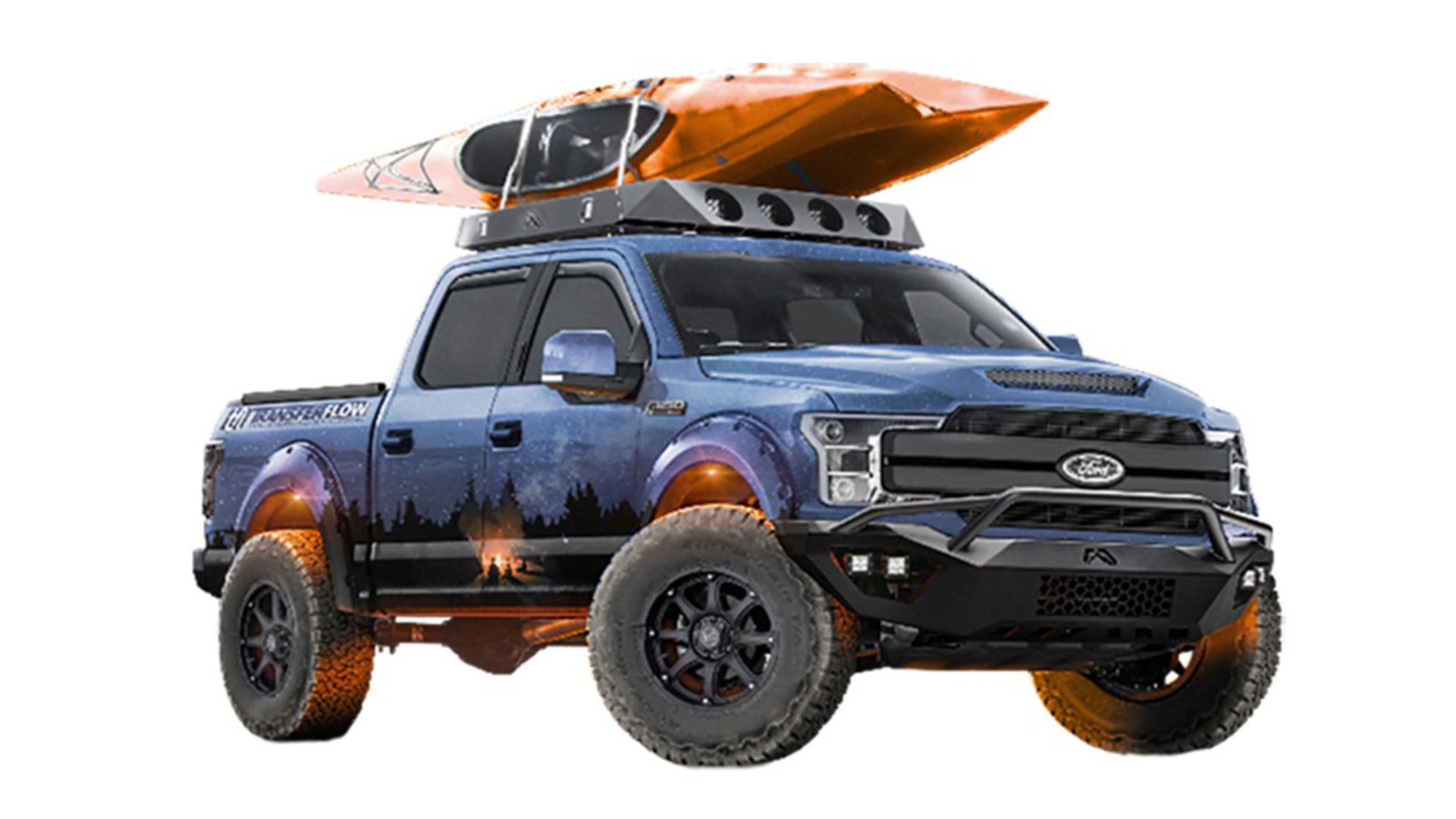 Το Transfer Flow F-150 (το βλέπετε ακριβώς από πάνω) είναι μία εκδοχή για τις παραλίες και τα χωμάτινα εδάφη. Απευθύνεται σε όσους λατρεύουν να σερφάρουν ή κάνουν καγιάκ στα ποτάμια και χρειάζονται ένα σούπερ μεταφορικό μέσο. Κάτω από το καπό έχει έναν πετρελαιοκινητήρα V6 των 3,0 lt όταν η αερανάρτηση της Hellwing ισοπεδώνει κάθε ανώμαλο οδόστρωμα. Για σούπερ αυτονομία coast-to-coast και πέρα από το κανονικό με τα 50 γαλόνια υπάρχει έξτρα ρεζερβουάρ με ακόμη 40!