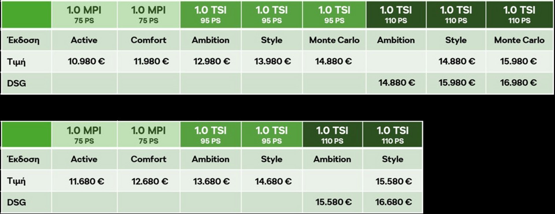 Οι κινητήρες MPI έχουν δεχθεί αλλαγές με τα ακροφύσια ψεκασμού καυσίμου να διασφαλίζουν τώρα πιο αποτελεσματικό ψεκασμό του καυσίμου. Αλλαγές έγιναν στον αισθητήρα οξυγόνου για καλύτερη αναλογία καυσίμου-αέρα. Με άμεσο ψεκασμό ο κινητήρας αποδίδει ισχύ 55 kW (75 PS). Η κατανάλωση καυσίμου και οι εκπομπές ρύπων μεικτού κύκλου του 1.0 MPI των 75 PS είναι 4,8 l ανά 100 km (110 g CO2/km).
