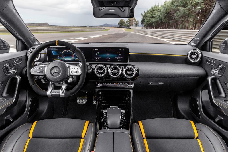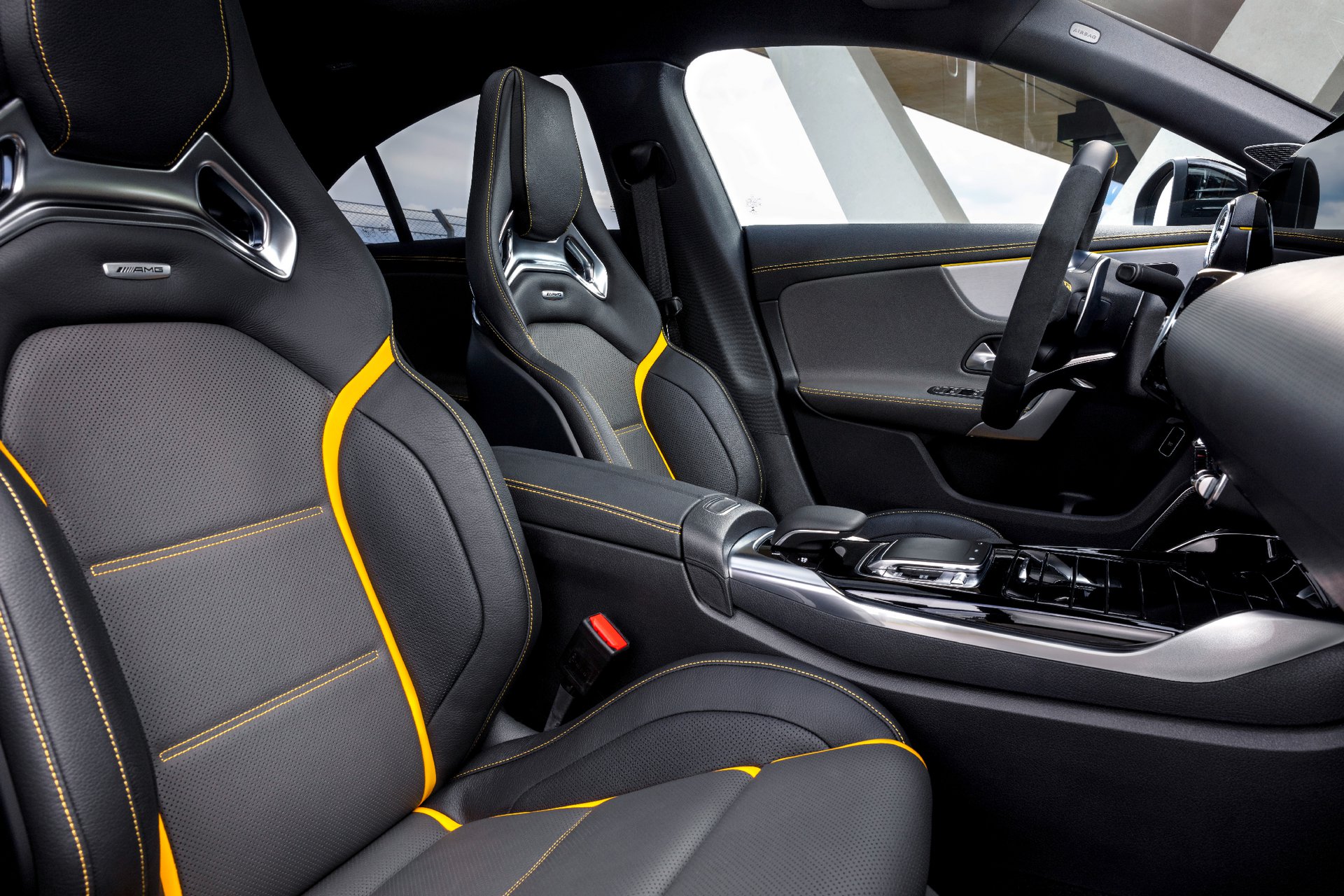 Οπτικά τα νέα μοντέλα είναι τα πρώτα της οικογένειας A που φορούν την αυθεντική μάσκα της AMG με το χαμηλό άνοιγμα και τις 12 κάθετες γρίλιες, αλλά και με το λεγόμενο «ρύγχος καρχαρία» του εμπρός μέρους, την ποδικά, τα λεπτά φωτιστικά σώματα και τους θόλους των τροχών δημιουργείται ένα πολύ επιθετικό σύνολο με πολλά αεροδυναμικά βοηθήματα που ολοκληρώνεται με την ανάλογη φροντίδα του πίσω μέρους με μεγάλη αεροτομή στην A45, εντυπωσιακό διαχύτη και εξατμίσεις διαμέτρου 82 mm για τις απλές και 90 mm για τις «S» εκδόσεις. Η δε CLA 45 4MATIC θα μπορούσε να είναι μια AMG GT 4-door Coupe «τσέπης» καθώς οι αναλογίες και οι περιποιήσεις σε αισθητικό και αεροδυναμικό επίπεδο είναι ανάλογες της ναυαρχίδας. Τα στάνταρ ελαστικά 245/40-R18 δένουν με επίσης εντυπωσιακές ζάντες, ενώ τα παράγωγα S φορούν 19άρες ζάντες με ελαστικά 245/35-R19 για την Α45 και 255/35-R19 για τη CLA 45. Το εσωτερικό ορίζεται τόσο από το περιβάλλον των AMG όσο και από τη νέα πλατφόρμα MBUX με ανάλογο διάκοσμο, πληθώρα διασύνδεσης και γνήσια σπορ όψη.