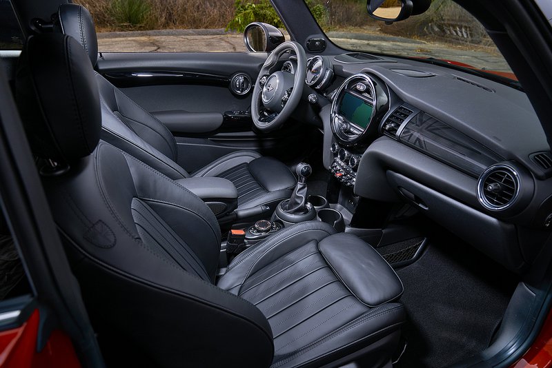 Στο εσωτερικό υπάρχουν μια πλούσια γκάμα δερμάτινων ταπετσαριών, φινιρισμάτων, για πρώτη φορά εξατομίκευση με το MINI Yours Customised (μπορείτε να παραγγείλετε ό,τι θέλετε για όνομα στο μαρσπιέ, τα πλευρά των εμπρός θόλων, την προβολή σήματος και τη μετόπη του ταμπλό και να ετοιμαστούν στο χέρι από εξειδικευμένους τεχνίτες), νέο τιμόνι πολλαπλών λειτουργιών και ηχοσύστημα με έγχρωμη οθόνη 6,5-ιντσών, USB και διεπαφή Bluetooth στάνταρ και προαιρετικά συστήματα ήχου και πλοήγησης με οθόνη αφής. Ακόμη διατίθεται ασύρματη φόρτιση κινητού τηλεφώνου και υπηρεσίες MINI Connected και MINI Connected XL με νέες λειτουργίες.