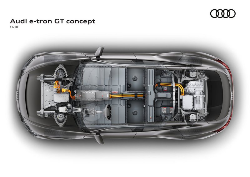 Οι τιμές αυτές είναι εφικτές χάρη στη συνδυαστική απόδοση των 590 PS των δύο ηλεκτροκινητήρων του e-Tron GT που κινούν ο καθένας από έναν άξονα και εξασφαλίζουν έτσι και τετρακίνηση. Υπάρχει και τετραδιεύθυνση, ενώ η φόρτιση των μπαταριών με χρήση τεχνολογίας 800 V διαρκεί για το 80% της χωρητικότητας μόλις 20 λεπτά.