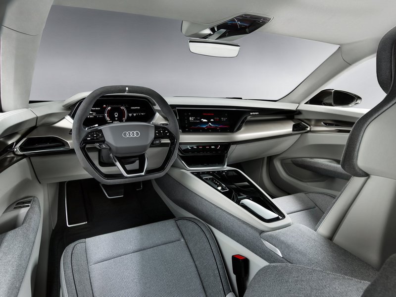 Στο εσωτερικό κυριαρχούν οι οθόνες και η εικόνα αποτελεί μια εξέλιξη του ταμπλό των σύγχρονων Audi, ενώ χαρακτηριστικό είναι πως επιπλέον του πορτμπαγκάζ των 450 lt υπάρχει και ένας επιπλέον χώρος 100 lt μπροστά. Οι πωλήσεις του Audi e-Tron θα ξεκινήσουν το 2021 και σε μια τιμή που στη Γερμανία θα κυμαίνεται γύρω στις 100.000 ευρώ.