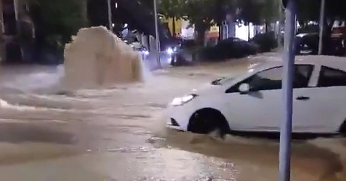 Bad Weather Byron: A "fountain" erupted on a main road in Kallithea – a manhole cover blew open.