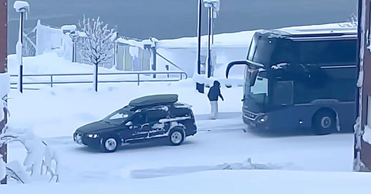 Αναμενόμενα προέκυψαν προβλήματα στους δρόμους, παρά το γεγονός ότι οι οδηγοί εκεί είναι εξοικειωμένοι σε αυτές τις συνθήκες. Ας πάρουμε για παράδειγμα τι συνέβη στην πόλη Oskarshamn, όταν ένα διώροφο λεωφορείο βρέθηκε κολλημένο στον χιονισμένο δρόμο, ανήμπορο να συνεχίσει, μέχρι που ήρθε να το ρυμουλκήσει ένα Volvo XC70.