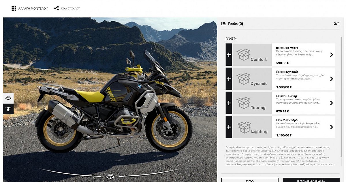 Η BMW έχει ήδη εφαρμόσει το σύστημα "Configurator" σε παγκόσμια κλίμακα, συμπεριλαμβανομένης και της Ελλάδας, με το οποίο ο αγοραστής μπορεί να δει τη μοτοσυκλέτα του ψηφιακά, να την εξοπλίσει, να υπολογίσει το κόστος και να ζητήσει προσφορά από την εταιρεία. Στο επόμενο στάδιο, θα μπορεί να την αγοράσει online ενώ η μοτοσυκλέτα θα παραδίδεται στο σπίτι του!
